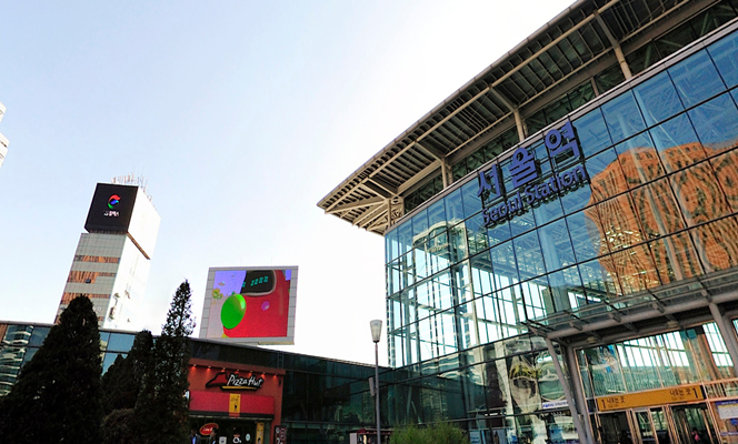 大韩民国首尔市的铁路交通枢纽,亦为首尔地铁1号线及4号线的交会车站,首尔最重要的火车站,也是连结首尔与韩国第二大市区釜山的是KTX高速线路的始发站。客流量非常大,媒体位于站外,受众非常广泛。