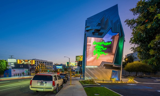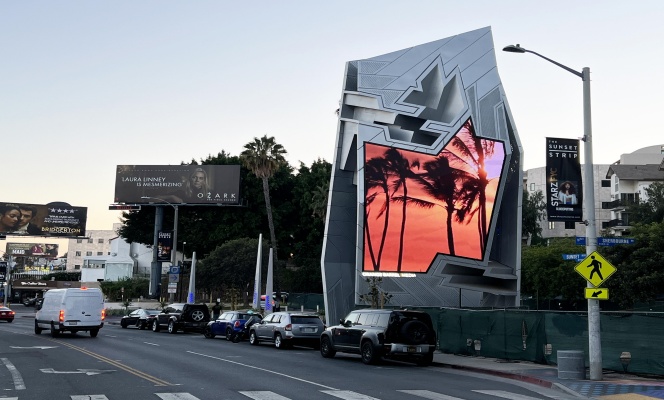 媒体坐落于日落大道霍洛威大道一个显眼的拐弯处,来往豪车名人、西好莱坞居民、电影摄制组和游客络绎不绝。 《纽约时报》评价此媒体“让路人沉浸于流媒体世界中”。这座64英尺高的塔楼拥有无与伦比的冲击力,显眼的双显示屏 面向比佛利山庄和好莱坞之间来往不息的车流,是日落大道的标志性的现代地标。