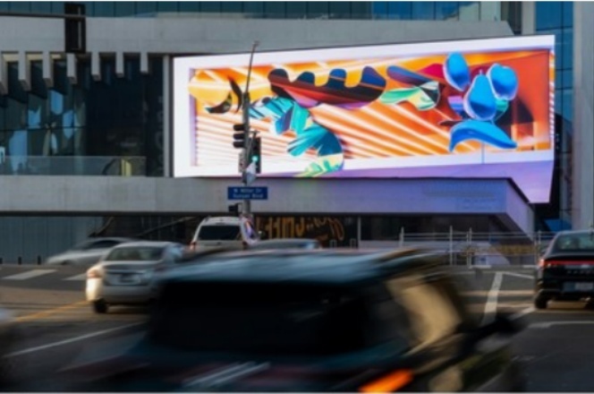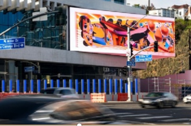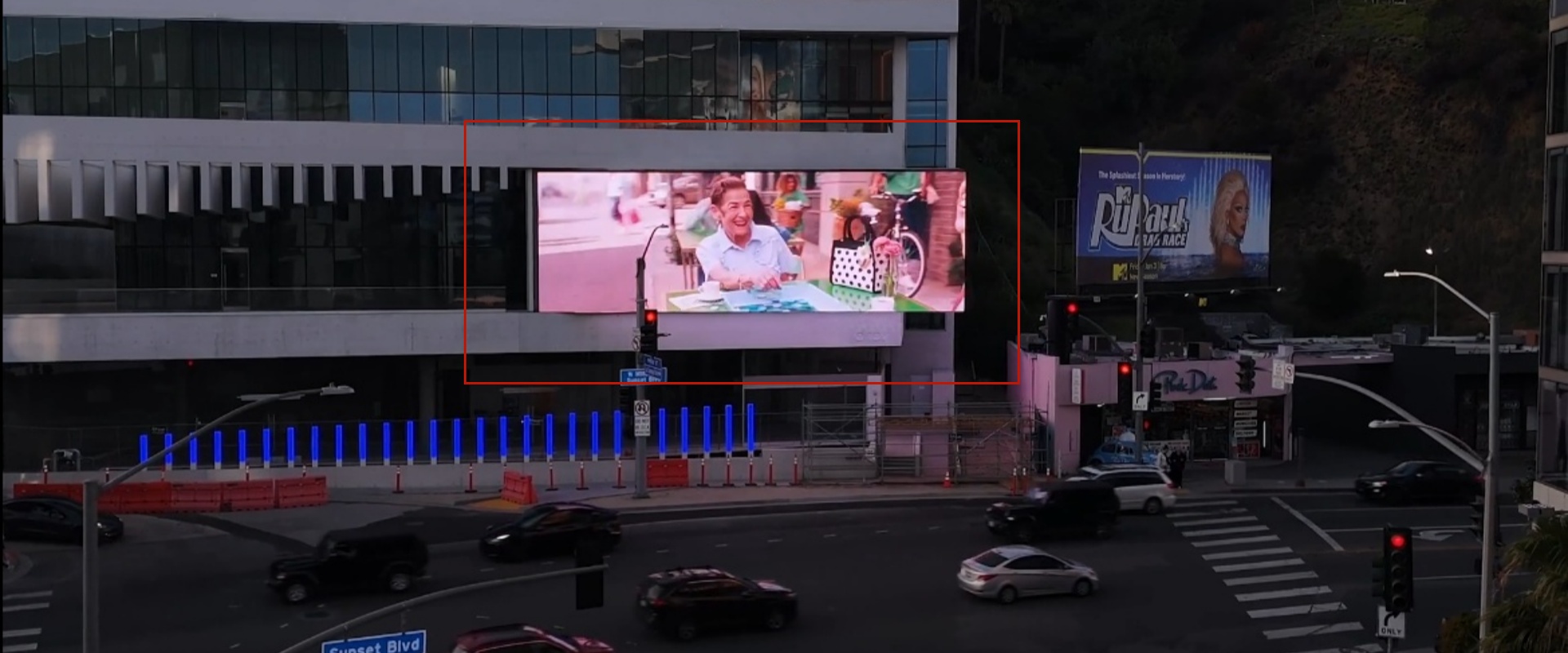 媒体位于拉辛尼加大道(La Cienega Blvd.)与日落大道(Sunset Strip)的交汇处,巧妙拦截了缓慢驶上拉辛尼加大道或沿日落大道前行的车流。 其拥有独特的三面全动态数字化LED大屏,巨大的屏幕具有非常震撼的视觉效果,可视距离远,能有效攥取来往车流人流的注意力。 而其60英尺高的南侧立面为品牌提供了日落大道上最大且最低的数字显示屏,也是日落大道首个支持3D创意内容的载体,能够为品牌提供更全面更有新鲜感的服务。