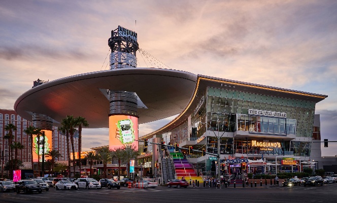 位于拉斯维加斯大道与春山路交汇处,正对永利皇宫,是拉斯维加斯旅游、购物、 娱乐人流最密集的“十字路口”之一。坐拥日均数十万的游客和本地高消费人群, 确保您的广告能被全球各地的观众看到。这些屏幕本身就是巨大的地标,视觉 冲击力极强,无法被忽视。广告牌直接依附于Fashion Show Mall这一高端购物中心, 能精准触达前来奢侈品消费的人群。