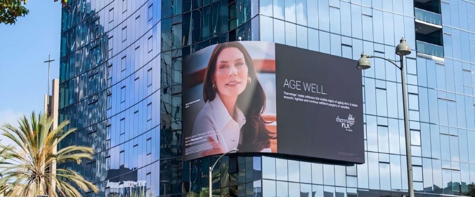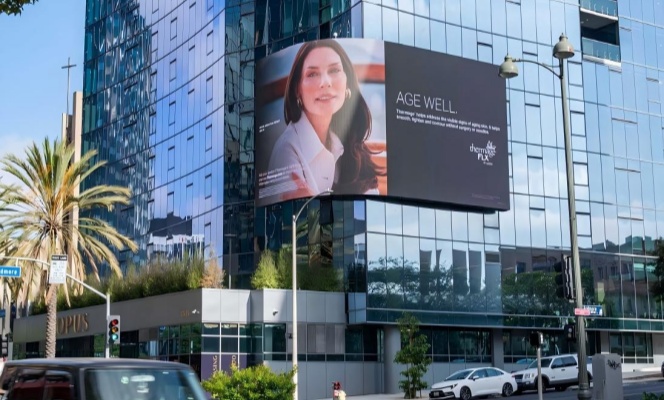 媒体位于OPUS综合大厦(威尔希尔大道与西西方大道交汇处,洛杉矶韩国城), 地处洛杉矶韩国城核心商圈,是洛杉矶最繁忙的路口之一。作为连接比佛利山庄、 市中心和西好莱坞的重要枢纽,确保品牌的高频曝光。周边豪宅林立,如 The Line Residences、 The Vermont等高端公寓,居民多为企业高管、明星、高收入专业人士,消费力强劲。其独特的弧形 LED屏在繁忙街景中非常夺人眼球,无论是白天还是夜晚都极为醒目,是韩国城的地标性媒体。
