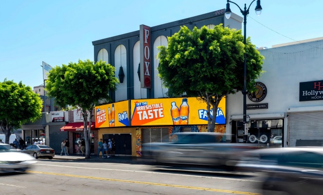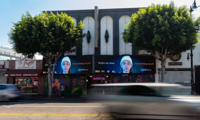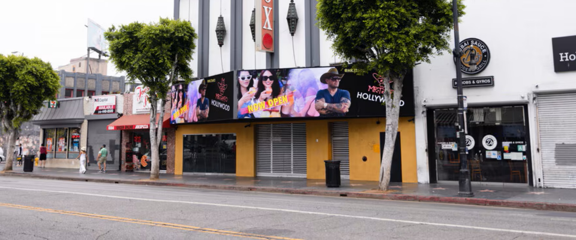 这块双面的数字广告牌俯瞰着繁华的好莱坞大道及其标志性的星光大道,处于是洛杉矶最具标志性的旅游与娱乐中心。