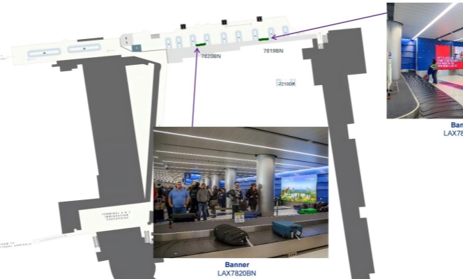 该媒体位于美国洛杉矶国际机场T6航站楼到达行李提取处面相北面, 可以100%覆盖到达的乘客,乘客在此处等候行李的时间有效延长了 受众群体与广告画面的接触时间。有利于广告内容的宣传。