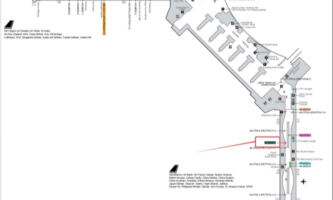 媒体位置:旧金山国际机场国际航站楼T4-A厅出发阿联酋航空休息室对面