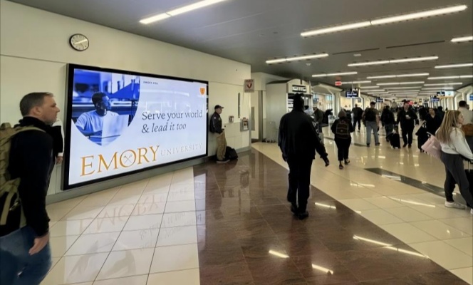 媒体位于亚特兰大国际机场Concourse A南侧,周围环绕着大型达美航空登机口候机区, 以及购物和餐饮场所。该区域汇聚大量高净值商务及休闲旅客,在候机、转机及前往餐饮 购物场所的必经动线上形成自然停留,为广告创造了充足的强制曝光场景。结合机场独有 的封闭环境和品牌信任背书,广告不仅能深度触达高频往返的航空常客,更可借助周边活跃 的商业氛围,直接激发消费意愿,是实现高端品牌展示、精准客群沟通和提升旅行消费转化 的黄金点位。