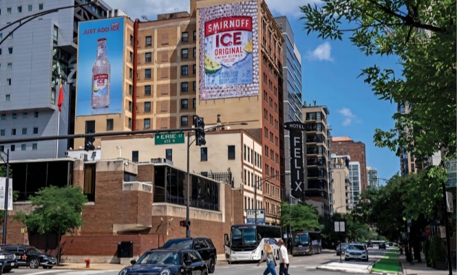 以我们令人叹为观止的RiverNorth电视幕墙主导芝加哥市中心。准备好在这片充满活力的芝加哥市中心景观中留下持久的印记吧。 此处的广告总面积超过3400平方英尺,为您的品牌信息提供了无与伦比的展示平台。坐落于零售店、餐厅、酒吧以及住宅和办公 大楼的环绕之中,其战略位置使其能够吸引多元化且充满活力的受众群体。当行人、通勤者和当地居民穿行于繁华的街道之上时, 您的品牌将能够从瓦克大道乃至更远的地方吸引他们的注意力,从而确保获得最大的可见度和影响力。