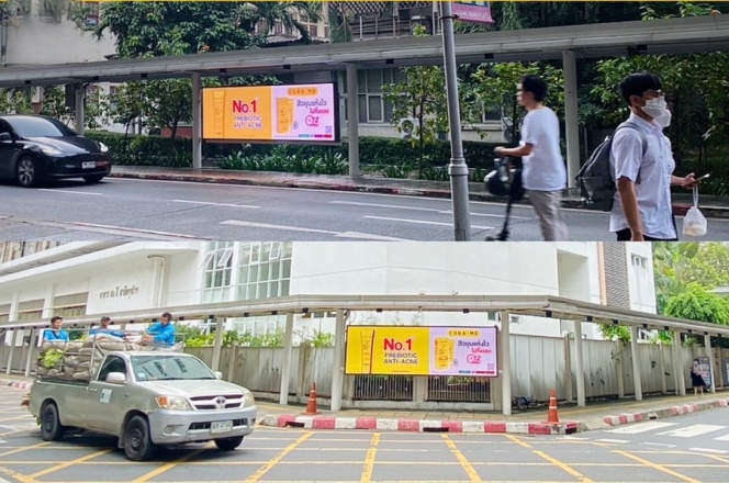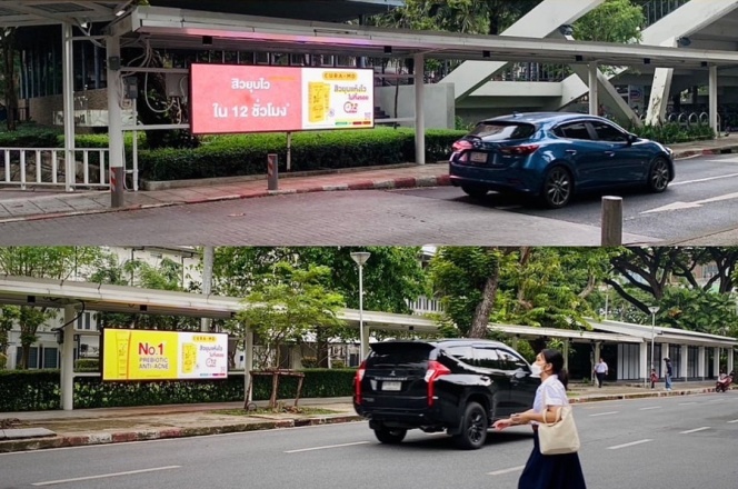 媒体位于曼谷朱拉隆功大学。这一泰国最古老、最顶尖的高等学府, 拥有庞大的师生群体,每天进出校园和在校园内活动的人数众多。 公交站是师生们日常上下车、等待公交的必经之地,人员流动频繁,这意味着品牌有大量的机会被目标受众看到, 能在较长时间内持续吸引人们的注意力,有利于提高品牌的知名度。