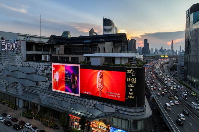 Bravo BKK的三块巨型广告屏凭借优越的地理位置与卓越的媒体价值,成为曼谷RAMA9-RCA区域的黄金广告载体。 这些屏幕位于诗拉特高速公路旁,双视角覆盖进出城方向,确保双向车流的高效触达。 超大尺寸的屏幕在远距离仍保持清晰可见,配合RCA娱乐商圈的高人流量,形成强大的视觉冲击力。 该区域作为曼谷核心商圈之一,兼具商业活力与交通枢纽优势,广告可精准覆盖都市消费人群。