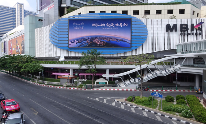 MBK 与国家体育场轻轨站仅一条人行道之隔,交通十分便利。在曼谷,几乎所有出租车司机都知道这座最著名的购物中心,因此无论从何处搭乘出租车前往 mBK 都十分方便,此处的交通略显拥堵。屏幕尺寸大,视觉传播效果非常好。