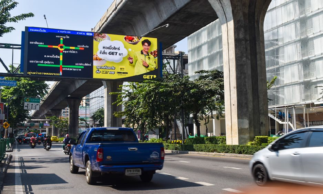 泰国曼谷市道路信息广告电子屏,覆盖18个区、40 个屏幕覆盖整个曼谷,28-53 平方米的屏幕每天可以带来530 万次的广告曝光,驾驶员与乘客在车辆行驶过程中一定不会错过的交通信息提示媒体,企业在此发布品牌广告无疑是得到了广告画面的强制打开开关,媒体覆盖与城市各主要交通干道上。