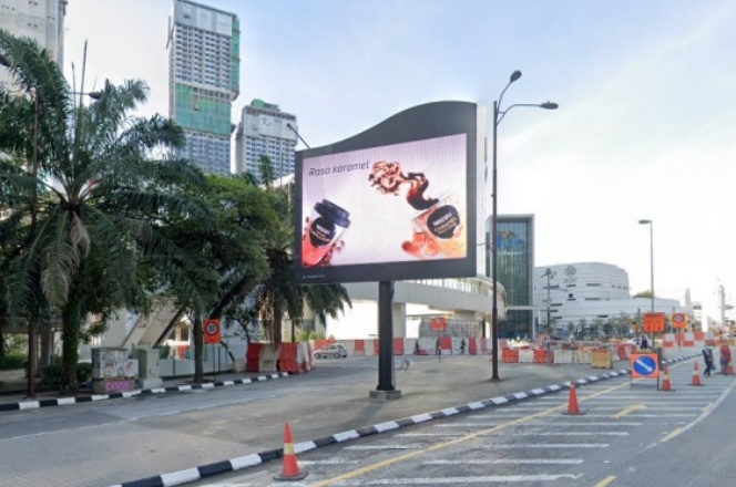 该屏幕位于Hang Tuah路。靠近Berjaya时代广场,该广场是一座由一间大型购物中心和两座酒店大楼所组成的一座大型建筑,位于吉隆坡武吉免登商圈内,由成功集团所兴建和经营,曾为马来西亚第二大,亚洲排名第五及世界排名第六的购物中心,每月进出广场的人次多达300万人次以上。