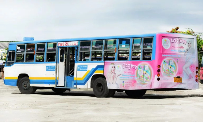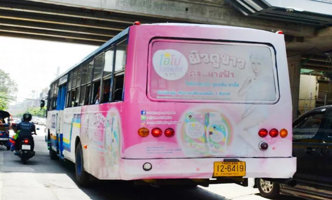 巴士被视为最佳移动广告媒体,震撼的画面效果,高频繁的流动性,无论是近距离还是远距离,都是非常有效的传播媒介。每日穿梭在城市中,无论是在市中心、商圈、市场、人口稠密的社区, 每天可以覆盖数以百万的受众。曼谷公共交通为曼谷、暖武里府、佛统府、巴吞他尼府、北沙空府、北榄府的人们提供巴士服务,在 456 条不同的路线上提供服务,共有 13,461 辆汽车(截至 2019 年 3 月 31 日) NESDB 1,543 辆普通车、1,501 辆空调车、117 辆 PBC(出租汽车)和 1,396 辆与曼谷公共交通管理局合作运营的私人公司车、1,870 辆常规车、1,396 辆空调车车辆,平均每天有 300 万人使用该服务。