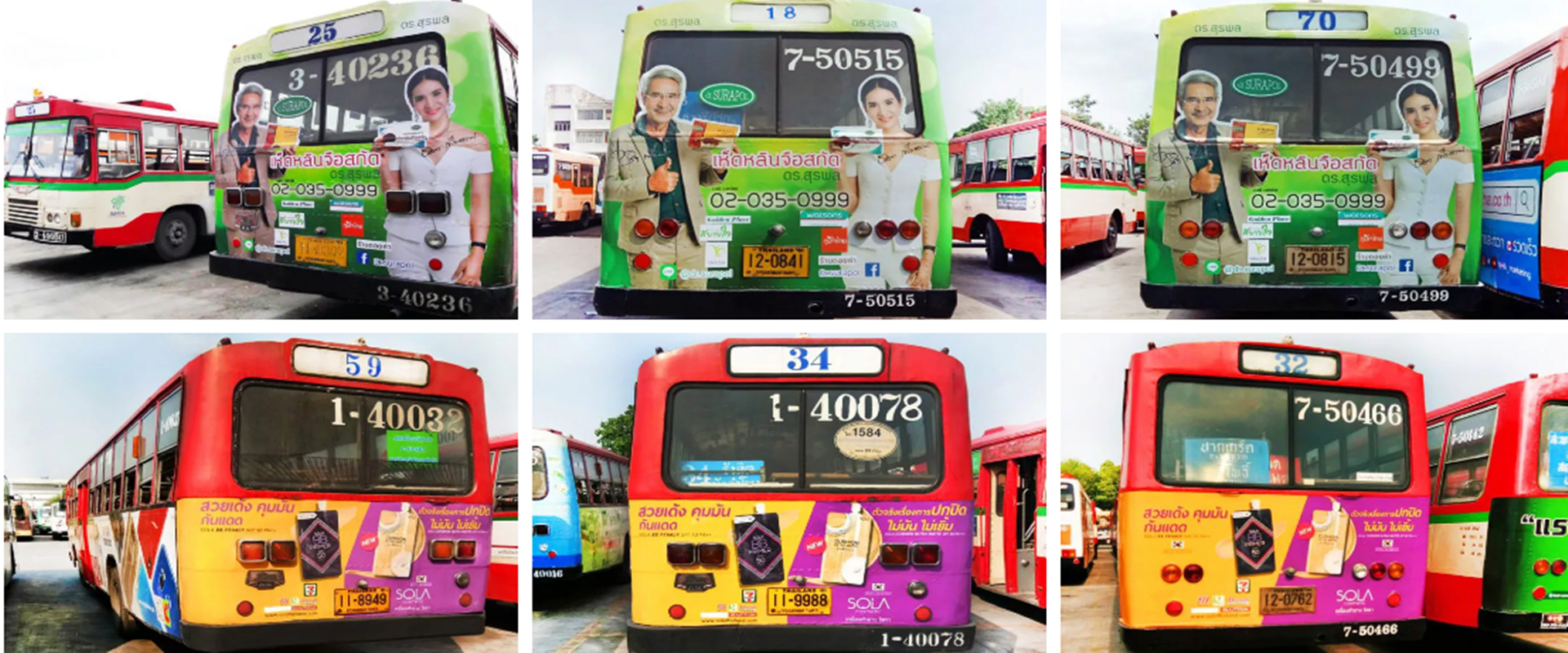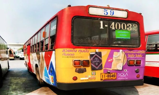 巴士被视为最佳移动广告媒体,震撼的画面效果,高频繁的流动性,无论是近距离还是远距离,都是非常有效的传播媒介。每日穿梭在城市中,无论是在市中心、商圈、市场、人口稠密的社区, 每天可以覆盖数以百万的受众。曼谷公共交通为曼谷、暖武里府、佛统府、巴吞他尼府、北沙空府、北榄府的人们提供巴士服务,在 456 条不同的路线上提供服务,共有 13,461 辆汽车(截至 2019 年 3 月 31 日) NESDB 1,543 辆普通车、1,501 辆空调车、117 辆 PBC(出租汽车)和 1,396 辆与曼谷公共交通管理局合作运营的私人公司车、1,870 辆常规车、1,396 辆空调车车辆,平均每天有 300 万人使用该服务。