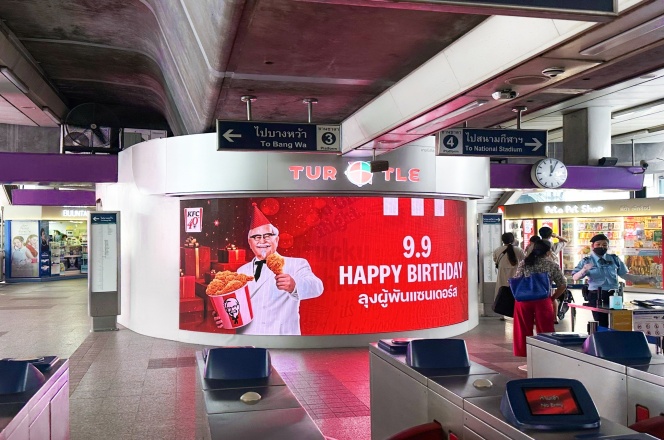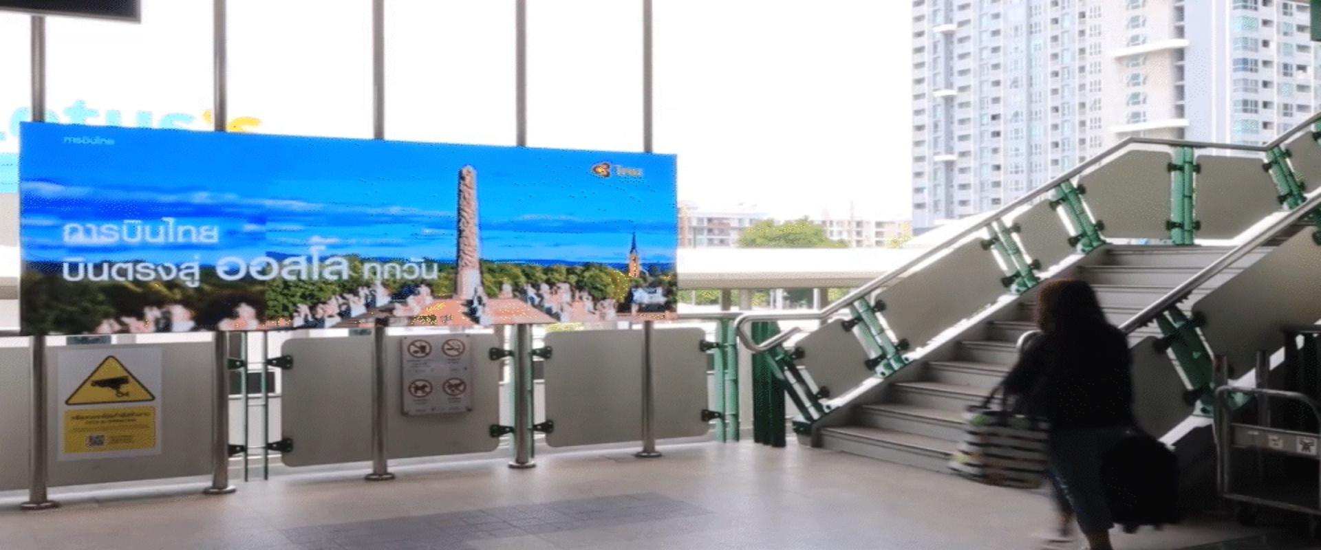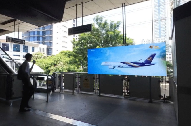 媒体位于曼谷空中列车车站迎宾区,覆盖20个车站,共107块屏幕。可视性好,覆盖人流量大,能形成影响力巨大的宣传网络。 车站乘客滞留时间长,品牌能得到较长的强制曝光时间,利于品牌的大范围有效宣传。