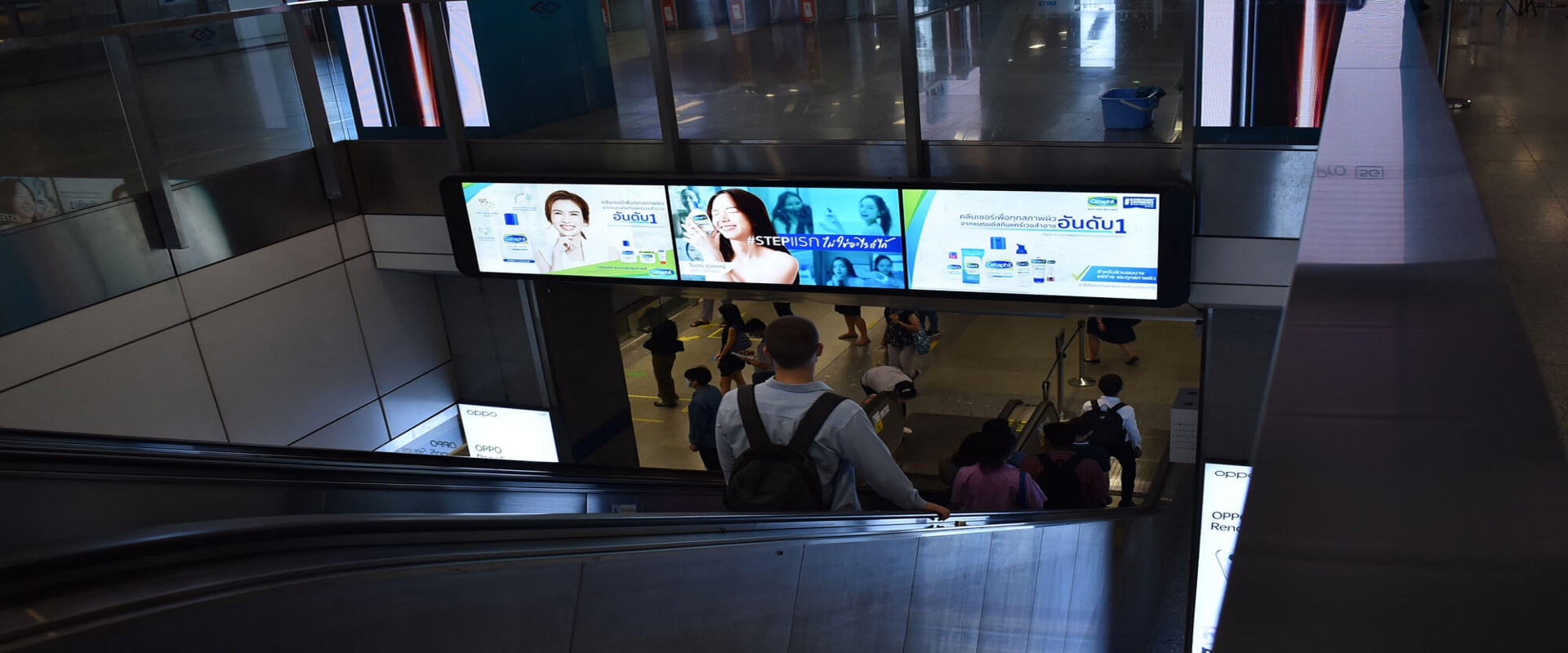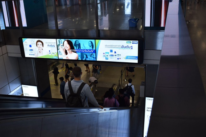 媒体位于曼谷空中列车车站,覆盖3个车站,共4块屏幕。可视性好,覆盖人流量大,能形成影响力巨大的宣传网络。 车站乘客滞留时间长,品牌能得到较长的强制曝光时间,利于品牌的大范围有效宣传。