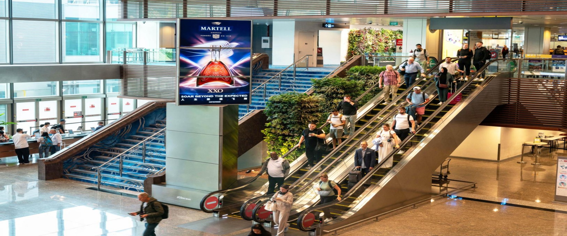 媒体位于新加坡樟宜国际机场到达T1 入境大厅自动扶梯旁,是一个壮观的地标媒体, 主要针对移民大厅来吸引所有到达、离开和过境的乘客。