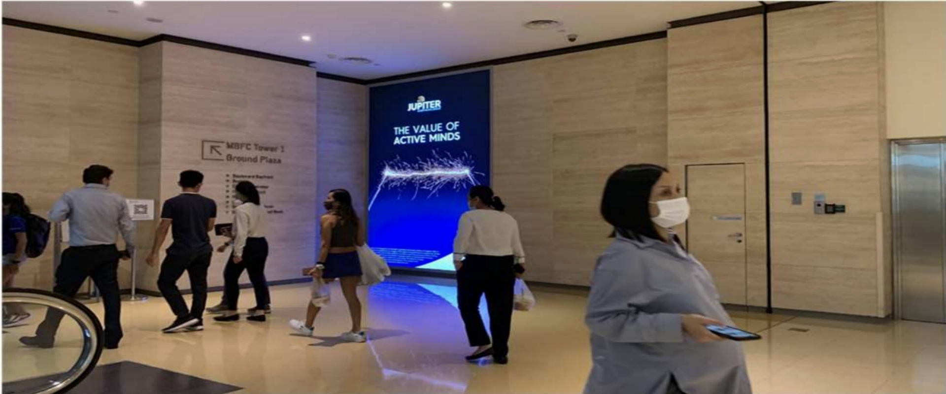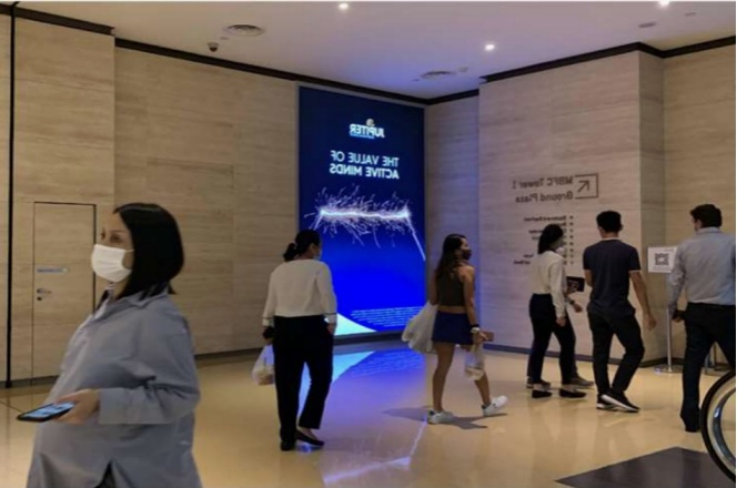 媒体位置:滨海湾商场(面向通往1号办公塔楼自动扶梯以及1层地面广场)