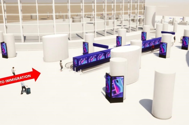 入境处是国际旅客落地后的第一个正式接触区域,广告可成为品牌“第一印象”,具极高记忆价值与影响力。入境旅客在通关、排队过程中有较长等待时间,极易注意周边广告内容,提升品牌曝光时长与认知深度。所有国际到达旅客几乎都会经过该扶梯,是机场“刚落地”之后的必经之路,广告能实现100%覆盖。扶梯行进时间一般为30秒以上,有利于旅客在移动过程中对品牌进行完整接收和反复印象加深。