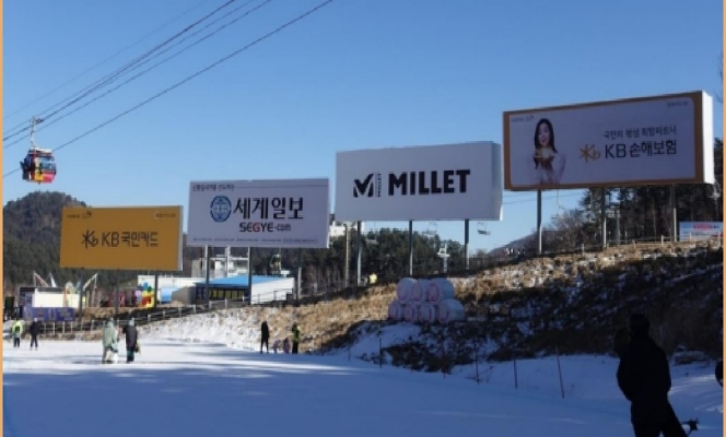 该媒体在四季滑雪场,此大牌面积较大,视觉冲击力强,另外其中四块大牌可以做双面广告,来往方向都可以看到,巨大的广告画面吸引了人们注意力。