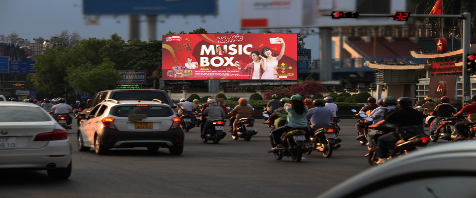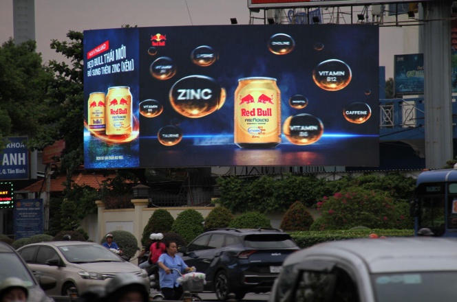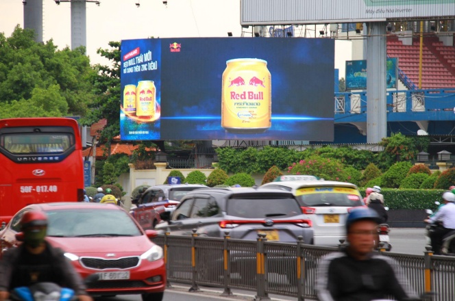 媒体位于胡志明市第七军区体育场,面向从胡志明市市区前往新山一机场的方向,是从市中心区域前往新山一机场沿线最大的LED显示屏。 由于附近红灯等待时间长,广告曝光时长非常可观。