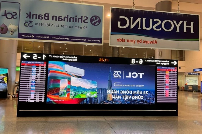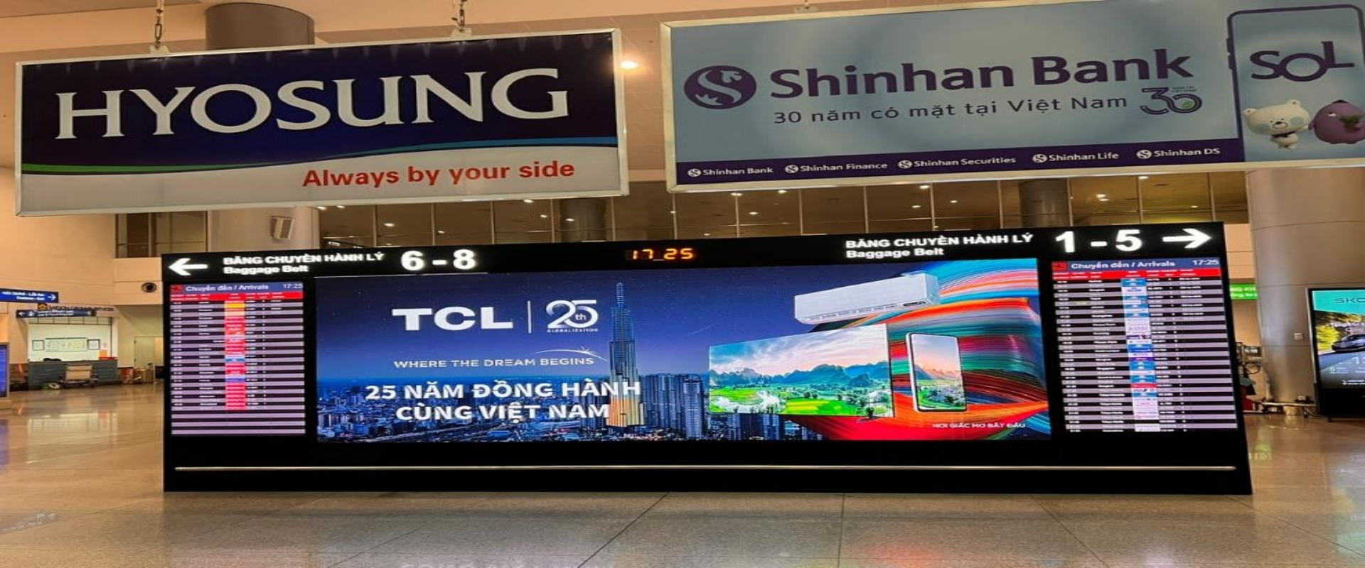 媒体位于抵达胡志明市新山一机场的所有国际航班行李提取区下行自动扶梯的对面。能100%直接触达国际到达的乘客。