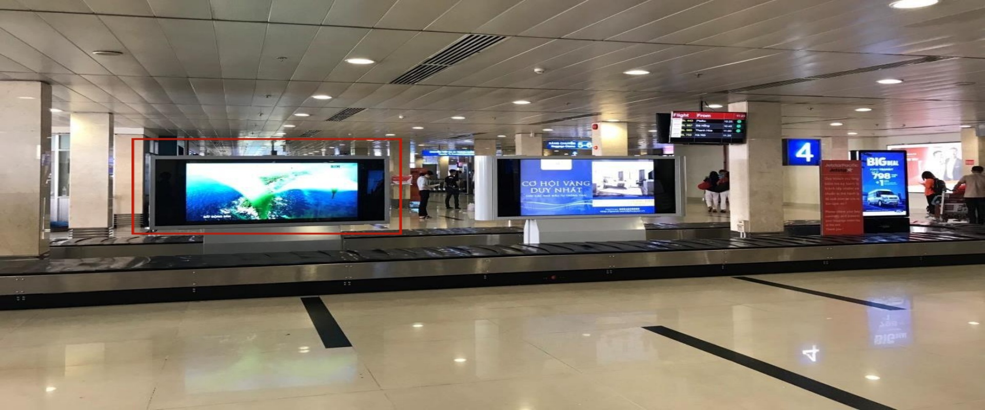 位于行李提取区上方的LED屏幕以平视视角呈现广告画面,全面覆盖新山一机场所有抵达旅客, 包括在传送带前等候行李的乘客以及途经该区域前往出口的旅客。