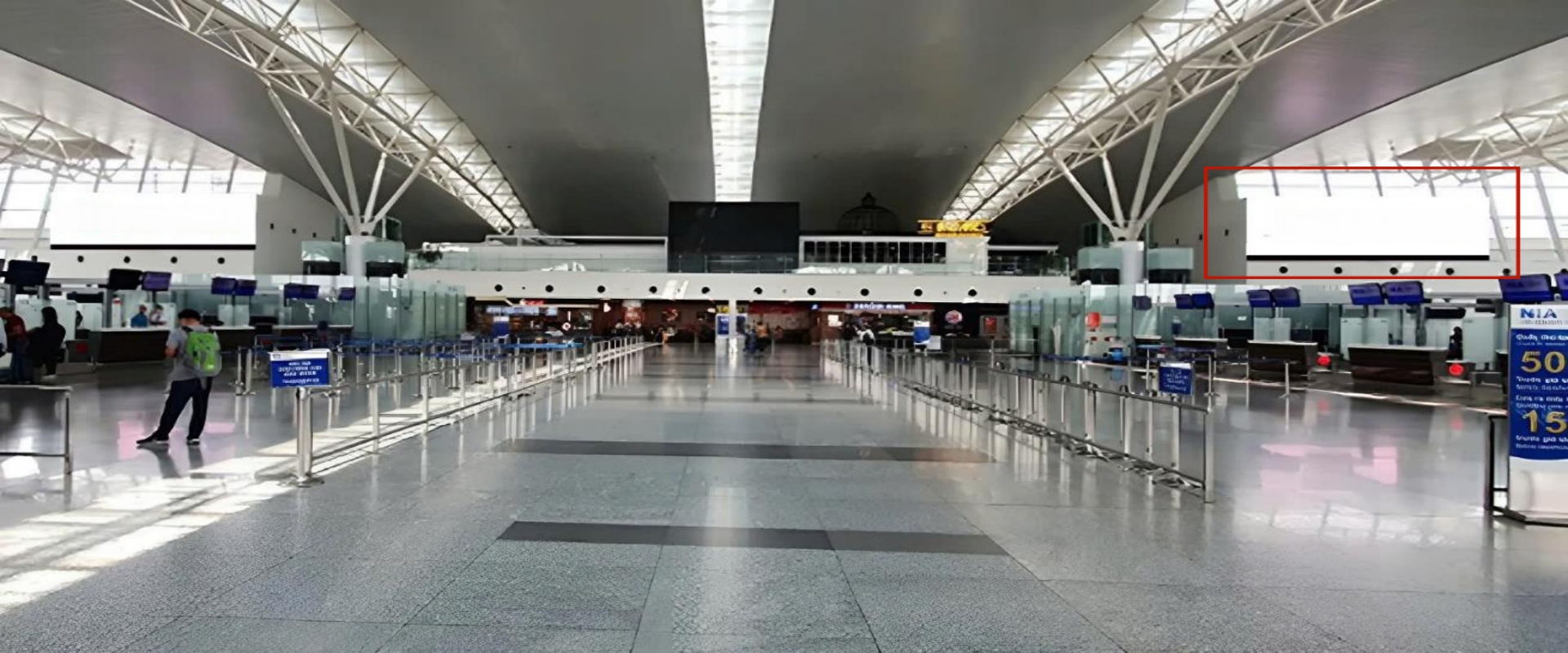媒体位于内排机场国际出发航站楼,能100%触达所有离境旅客,约50平方米的超大屏幕在大厅中非常醒目, 抓人眼球,从而保证品牌的大范围高质量宣传。