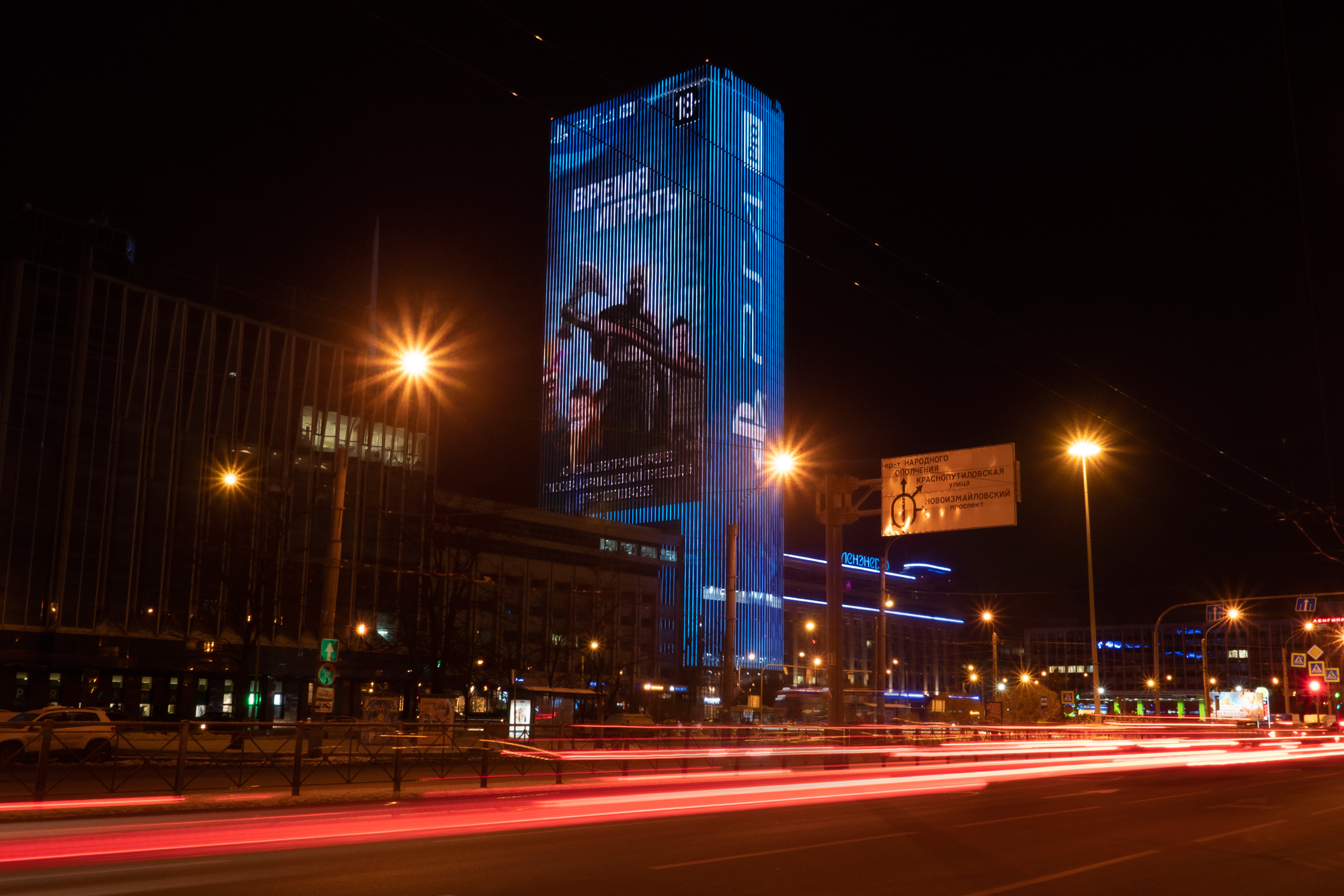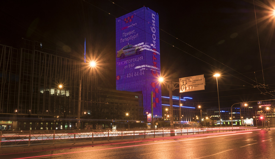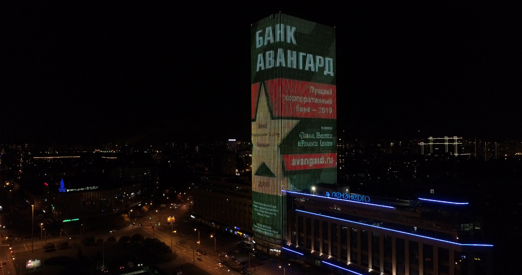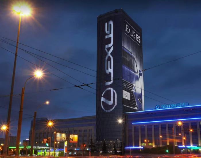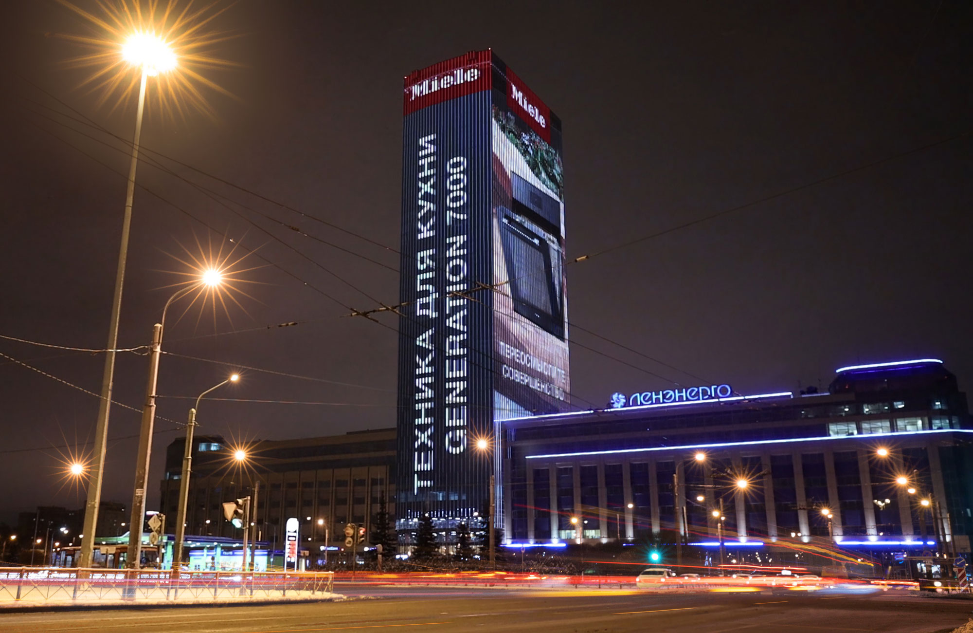 Leader Tower是俄罗斯圣彼得堡除电视塔外最高的建筑,这座摩天大楼的高度使它成为具有独一无二可视度的有效载体。大厦四周被高科技“外皮”所包裹。外墙媒体覆盖了大厦四面外墙:总面积几乎是两个足球场大小(15428平方米)。因此,从大厦的任意一侧都能看到广告。