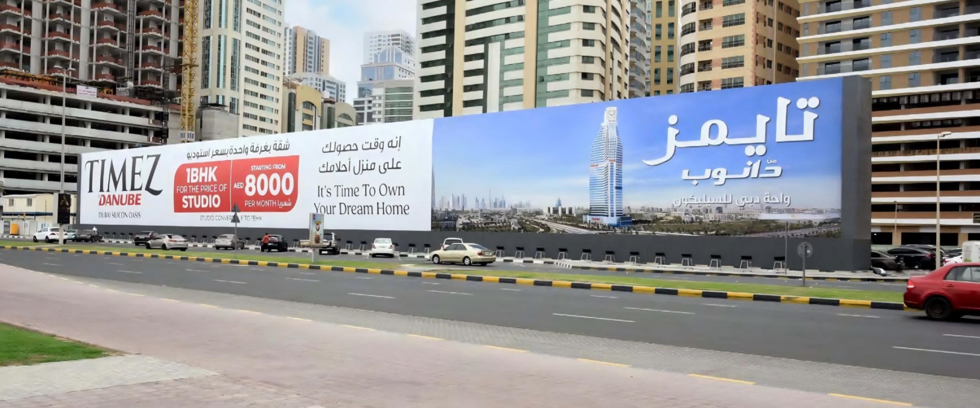 毗邻 Al Majaz Island 和 Buhaira Corniche,是沙迦最受欢迎的滨海休闲区与旅游景点之一,地标性强,吸引大量本地居民与游客。周边汇集公园、喷泉、餐厅、咖啡馆、影院(Novo Cinemas)等娱乐设施,人流密集且停留时间长。主要受众包括家庭游客、年轻消费群体及外籍常住人口,消费能力强,广告针对性高。节假日、周末及 Al Majaz Waterfront 的音乐喷泉表演、节庆活动期间,人流量显著增加。