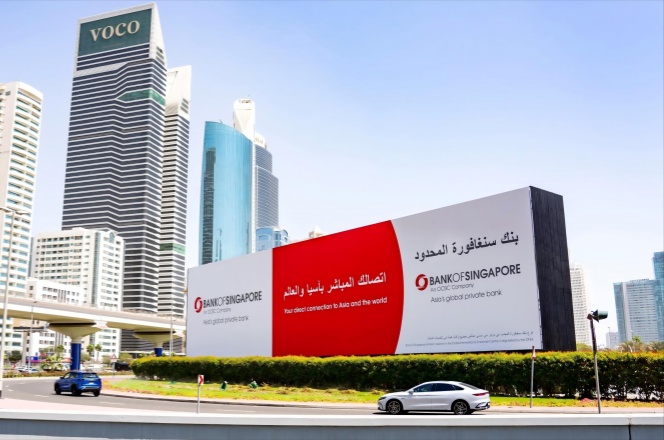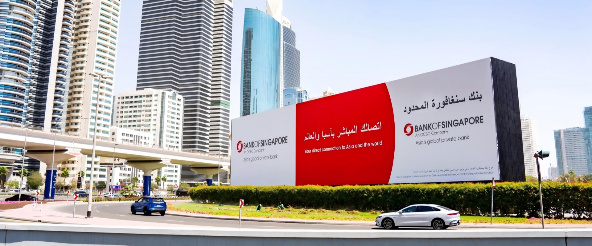 这是迪拜的核心干道 Sheikh Zayed Road,车流量密集,全天覆盖大量通勤、商务和旅游人群。广告在 DIFC(迪拜国际金融中心)和 Dubai World Trade Centre旁边,覆盖大量高收入商务人士和国际会议参会者。旁边是迪拜地标性建筑 Museum of the Future,广告位置醒目,便于品牌与地标绑定形成强记忆。由于是主要干道和商务枢纽,无论工作日还是周末,人流车流量都很大,品牌曝光持续且稳定。