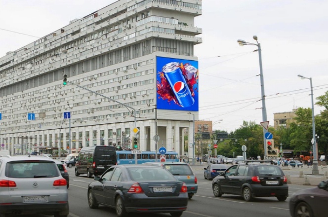 位于莫斯科最长的道路之一,这使得该屏幕成为每天数十万人关注的中心。 我们屏幕的大小和质量使它成为在交通拥堵中被卡住和无聊时观看的地方。 由于没有阻挡元素,媒体立面具有很高的可视性。