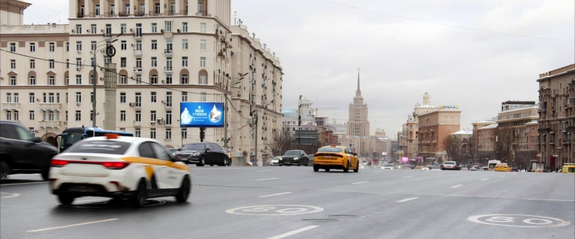 Kutuzovsky Avenue 是莫斯科的重要主干道,连接城市核心区域与外围,沿途多商务楼宇、高端住宅区及地标性场所,车流中包含大量商务人士、高消费群体等优质受众。而 TTK(莫斯科大环线)作为城市交通枢纽,其出口的车流具有明确的行驶方向和目的地,广告能精准触达从环线转入主干道的车辆,实现高价值人群的定向曝光。该位置作为出口后的首个显著视觉点,易被行驶中的车辆和乘客捕捉,减少因高速行驶导致的信息遗漏。