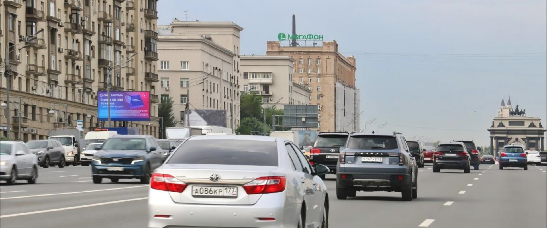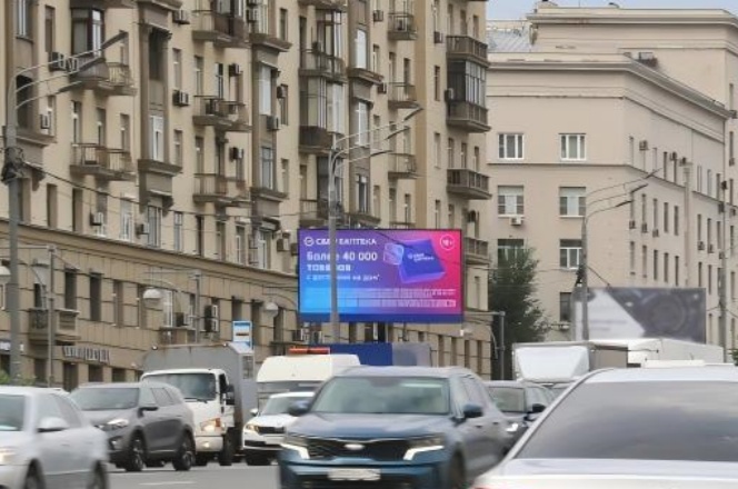 一方面,距离 TTK 出口仅 170 米,能覆盖从环线即将驶出、准备汇入 Kutuzovsky Avenue 的车流(包括提前减速观察路况的司机和乘客);另一方面,邻近 “Kutuzovskaya” 地铁站,可触达进出站的行人、地铁接驳人群及周边步行通勤者,实现 “高速车流 + 地铁人流” 的双重高密度曝光。广告在此处易被反复观看,强化品牌记忆,对本地生活服务、零售、餐饮等依赖复购的业态尤为友好。