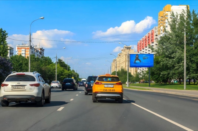 媒体位置:莫斯科米丘林斯基大道 21k1,与拉缅斯基大道交叉口(交通信号灯)后 150 米
