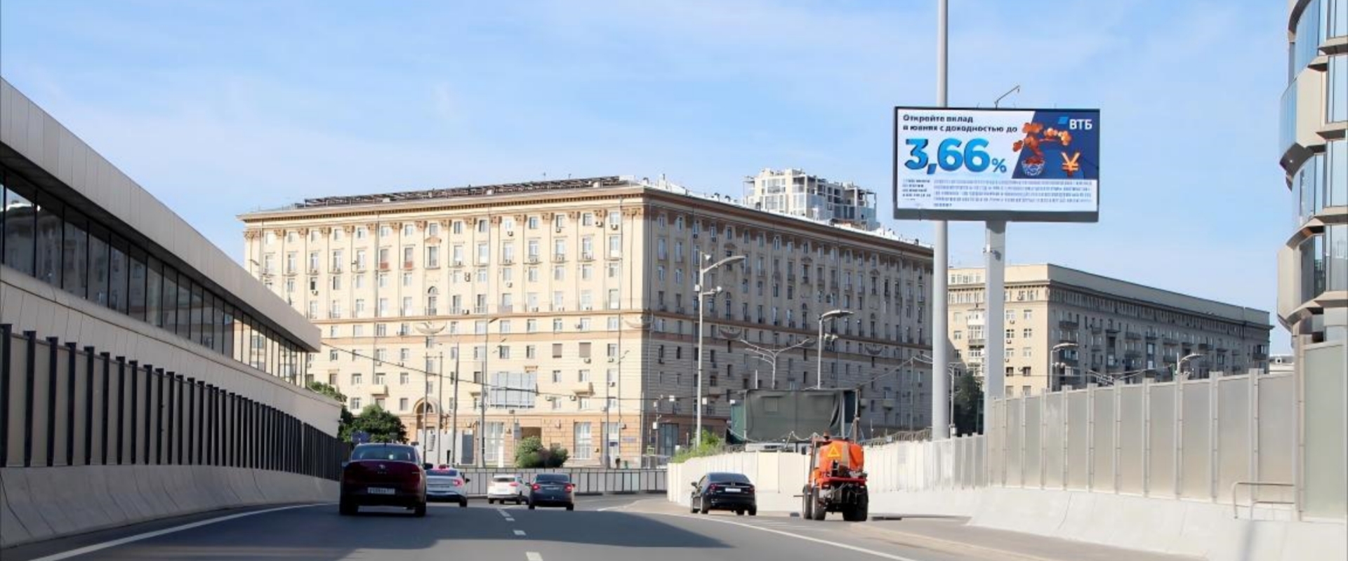 TTK 是重要的交通环线,车流量极大,库图佐夫大道也是繁忙的道路,两者交汇处人流量和车流量更是密集。同时,库图佐夫斯卡亚地铁站每天有大量乘客进出,包括通勤族、购物者、游客等不同群体,广告在此处能够获得极高的曝光率,吸引众多潜在受众的目光。该位置可能视野开阔,没有明显的障碍物遮挡视线,广告内容能够清晰地呈现在过往人群眼前。无论是驾车行驶在 TTK 或库图佐夫大道上的司机和乘客,还是从地铁站出来的行人,都能在较远距离就看到广告,有助于提高广告信息的传播范围和效果。