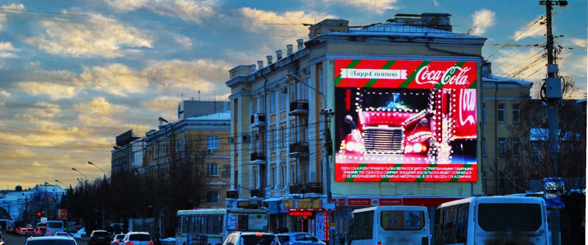该屏幕位于俄罗斯最大的城市之一和西伯利亚第二大城市,该媒体安装在城市的正中心,将住宅区与主要街道和 Om 河岸连接起来。 附近有三个购物中心和办公中心。