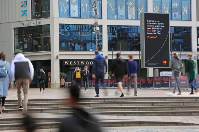 媒体位于莱斯特广场,坐落于伦敦西区核心商圈,毗邻摄政街与牛津街, 直连韦斯特菲尔德购物中心,日均人流量大,能有效覆盖全球游客与本地高消费人群, 利于品牌的有效大范围宣传。
