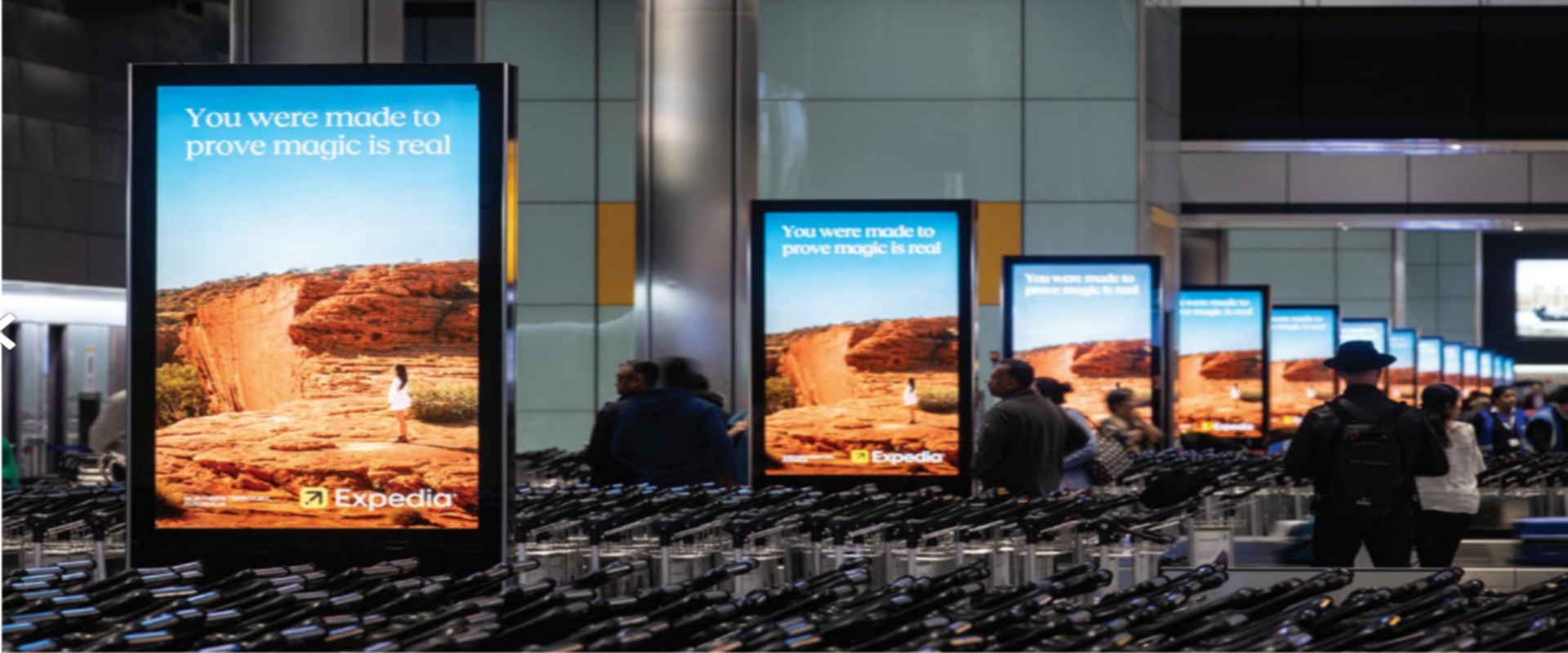 媒体位于希思罗机场所有航站楼行李提取大厅,由124块LCD屏幕组成的数字网络能对希思罗机场的旅客进行全覆盖, 且行李提取大厅旅客滞留时间长,有利于品牌的持续有效大范围曝光。