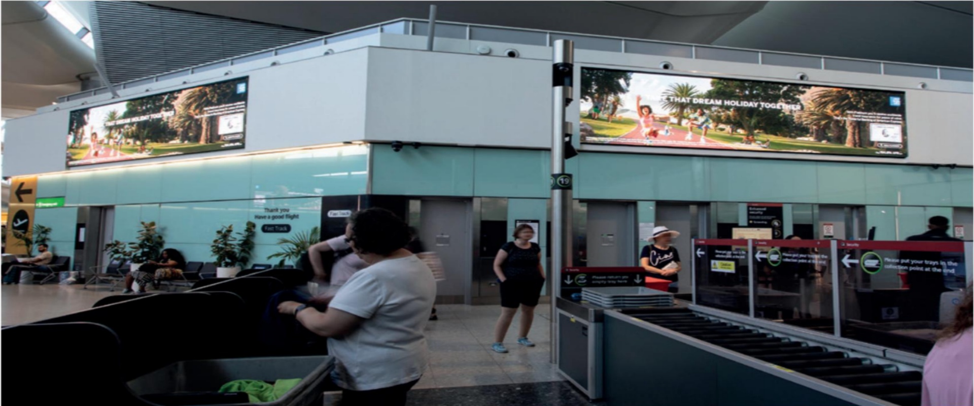 媒体位于希思罗机场T2安检后区域,由4LED屏幕组成,能对希思罗机场二号航站楼的旅客进行全覆盖, 且按键区域旅客滞留时间长,有利于品牌的持续有效大范围曝光。