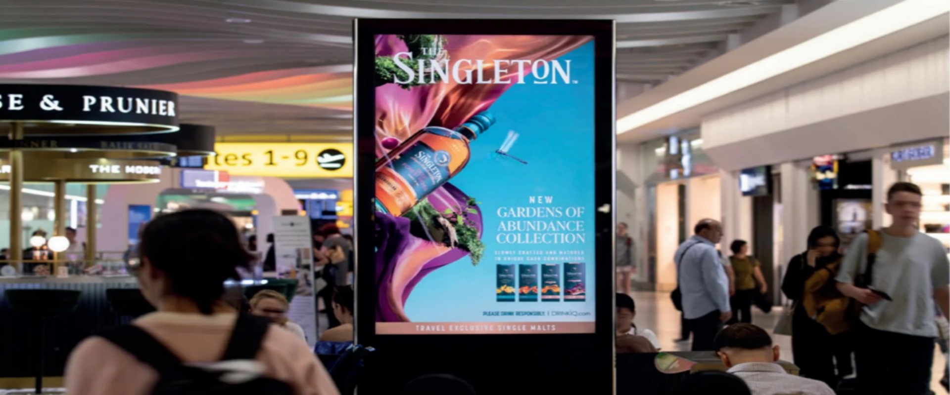 媒体位于希思罗机场4号航站楼前往商务贵宾区通道。 这些双面广告牌正对着所有前往商务贵宾厅的乘客,并且位于巴宝莉、宝格丽、卡地亚和古驰等一些最高档品牌店的旁边, 目标是所有离港乘客,包括那些转机到4号航站楼的乘客。
