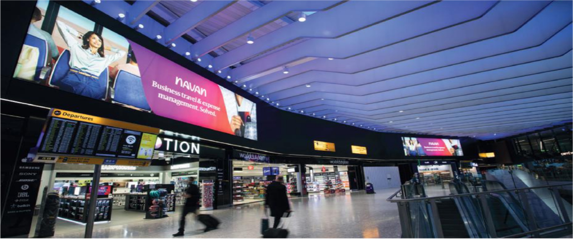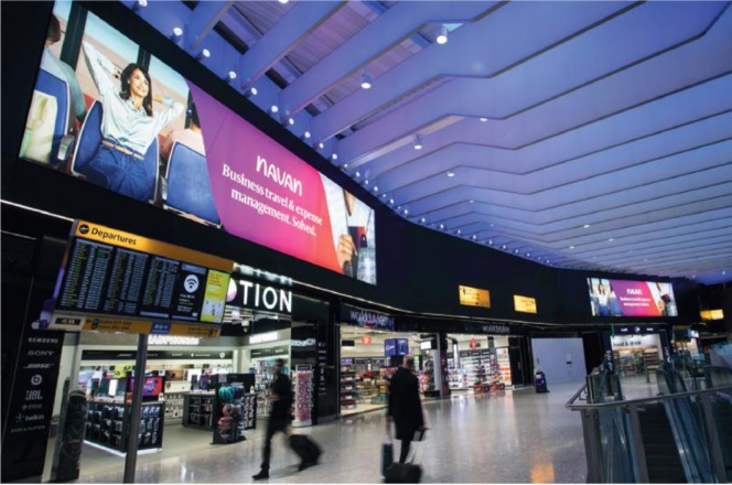 媒体位于希思罗机场2B航站楼零售区上方的黄金地段。它们不仅能覆盖到逛零售店的出港旅客,对于刚抵达2B航站楼的旅客来说也同样清晰可见。