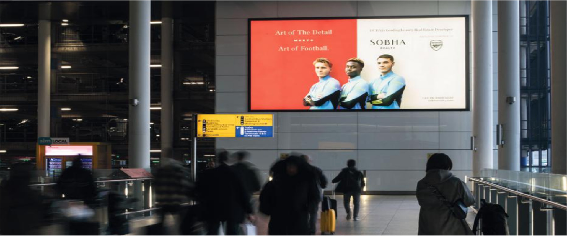 乘客出航站楼,穿过连接桥进入停车场时,这两个令人印象深刻的灯箱绝对不容错过。 它们占据了2号航站楼出口的有利位置,确保乘客在前往伦敦之前就能第一时间看到它们。