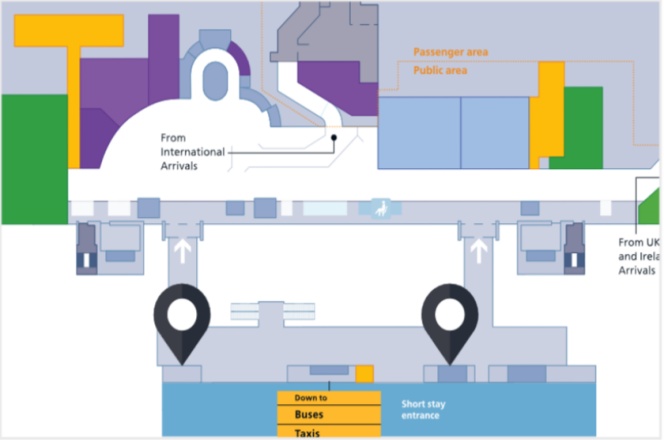 媒体位置:希思罗机场T2到达大厅通往停车场和所有列车服务主路