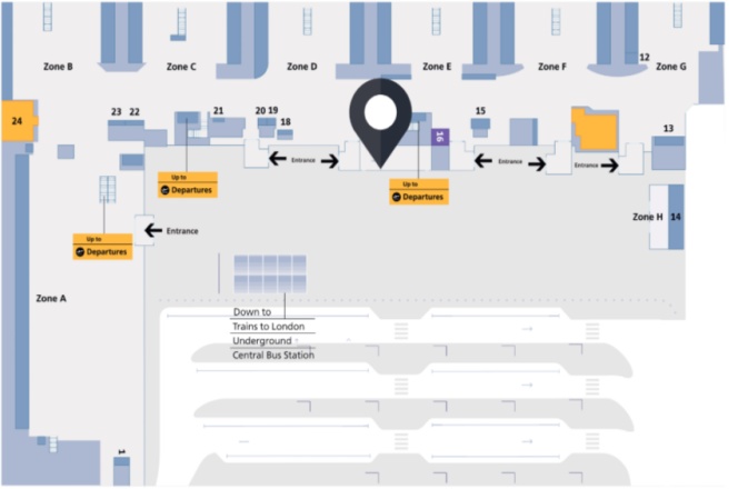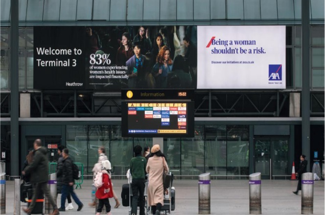 媒体位于航站楼外部正上方,迎接所有即将离港的旅客进入大楼。3号航站楼拥有最多的华人旅客,同时还接待着数百万来自世界各地的旅客。 它是往返美国的最大航空枢纽之一。这里是3号航站楼豪华零售区的主要入口,能够覆盖英国最高端受众群体。