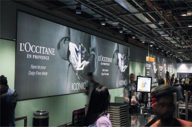 媒体位于希思罗机场T3安检区域的尽头,靠近世界免税店 (World Duty Free)。 由于旅客会在此重新打包行李,在此停留时间较长,品牌能得到更多曝光机会。