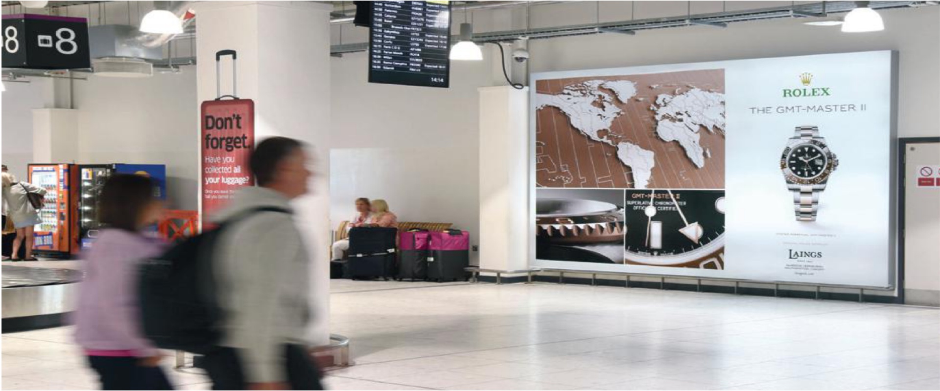 媒体正对着抵达爱丁堡机场的旅客,位于新建的国际到达2号厅区域。该区域旨在应对未来国际旅客增长,此位置保证能精准触达国际到达旅客。