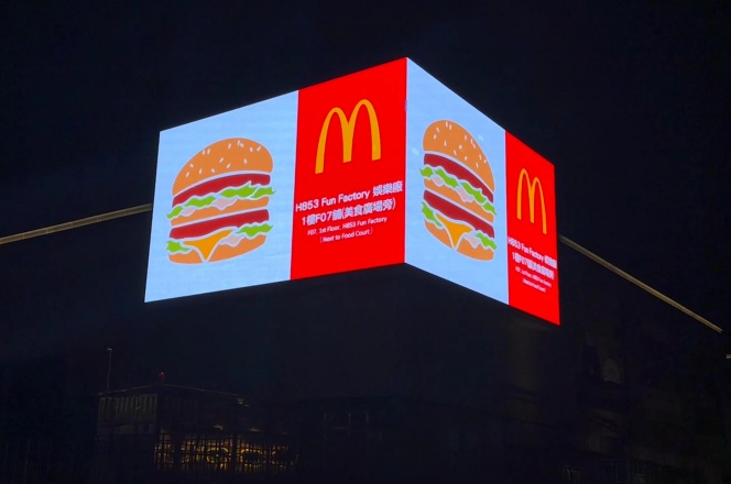 澳门葡京人位于澳门路凼城区,是以澳门为主题的旅游目的地,整体设计参考并重塑了澳门人集体回忆的经典地标,如爱都酒店、澳门皇宫娱乐场、新中央酒店等。该媒体位于酒店旁购物中心楼顶,面幅较大,可做裸眼3D效果,视觉冲击力强,宣传效果极佳。