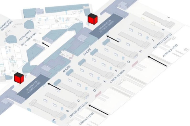 香港机场1号客运大楼7楼东大厅,入境后立方体