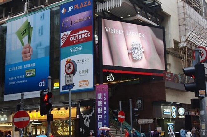 媒体尺寸不大,但是位置绝佳。受众多来自名店坊、皇室大厦、铜锣湾地带和恒隆中心。