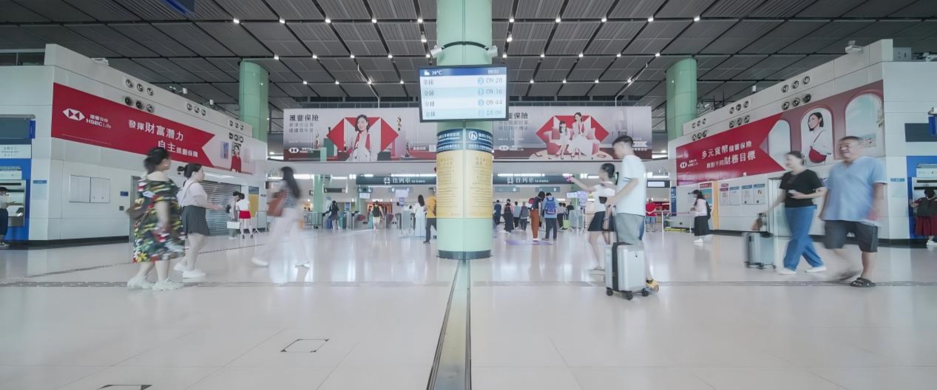 在香港落马洲离境区域大堂一楼出发楼层布局广告,依托口岸的跨境流量特性、空间动线设计及受众行为习惯,可形成独特的营销价值。这一场景尤其适合针对内地出境人群、商务客群及旅游客群的品牌。旅客在离境楼层通常停留15-30 分钟(办理通关、等待同伴、补充购物)一楼出发层的 “黄金视觉高度”出发楼层通常为口岸主入口层,旅客进入后第一眼视觉焦点集中于大厅,广告高度与视线平齐(1.5-2 米),无需仰头或俯视即可清晰观看,有效观看距离 1-5 米,信息接收效率高。